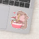 A cute pygmy hippo loves slurping on a bowl of vegan ramen noodles with seaweed, mushrooms, fishcake and scallions! For ramen and pygmy hippopotamus lovers! ♥