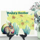 This watercolor floral daffodils flower clusters and cute rabbit and Easter eggs fill the cover of the card with template text on top. Personalise the cover and inside text, remove the text or edit using the design tool to select a font style, size, and colour.