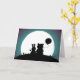 Sweet wedding congratulations greeting card with the silhouettes of a rabbit and bear holding a balloon sitting on a hill looking at the moon.  Personalise the text inside to read what you want.