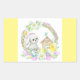 Cute rabbit, chicken, round frame made of branches and flowers. watercolor concept, in cartoon style