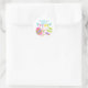 A Cute Easter sticker featuring a bunny rabbit carrying a bright coloured Easter egg of pink purple and green stripes and with the word "Easter" in colourful bunting. A great idea for church and large organised events of easter egg hunts to give to children to identify who is taking part or just to give as a well done sticker at the end of the event. Can be customised by adding the church or group's name . Text colour can be amended if click on personalise further. Have a happy Easter.