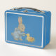This is a standard metal lunchbox that appears to work just fine. We designed this box ourselves with an uploaded photo and custom text on the front and back. It looks absolutely beautiful except the front of the lunchbox is not centered like it shows in the photo. The print borders don't align with the inset flat part of the box where the preview photo online showed it perfectly centered in there. The back looks nice and centered though.