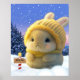 Cute Rabbit with yellow knit hat and scarf in snow Poster