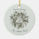 Cute Rabbits in a Floral Winter Wreath Ceramic Ornament