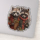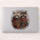 Cute raccoons dressed for a picnic hike
