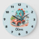 This personalised clock features a cute dinosaur driving a red racing car, igniting excitement and fun. Perfect for dinosaur enthusiasts and racing fan kids.