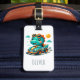 Personalised adorable Dino Racer luggage tag! Watch as a cute dinosaur takes the wheel of a racing car, igniting excitement and fun. Perfect for dinosaur enthusiasts and racing fans alike, this whimsical design adds charm and personality to anywhere and anyone.
