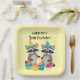 Cute racoon birthday party light yellow paper plate