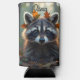 An adorable racoon sitting in a forest in Autumn covered Fall leaves personalised can cooler.