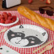 NewParkLane - Personalised Paper Plates, with a cute racoon in watercolor, against a fun patterned background of blush and white paws and hearts