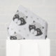 NewParkLane - Tissue Paper, with a cute black and white racoon pattern in watercolor, against a fun pattern of light grey polkadots.