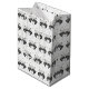 NewParkLane - Gift Bag for Kids, with a cute black and white racoon pattern in watercolor, against a fun pattern of light grey polkadots.