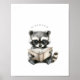Cute Racoon Reading Poster Print