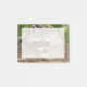 Sticky notes with a photograph of a cute and curious racoon resting his face on a wooden log. Adorable.