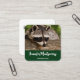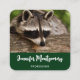 Business cards with a photograph of a cute and curious racoon resting his face on a wooden log. Adorable.