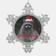 For nature lovers! Decorate your holiday tree with this metal snowflake ornament that features the whimsical photo image of a cute, forest Racoon wearing a red Santa hat and wishing one a Merry Christmas. A fun, animal wildlife design for the holidays!