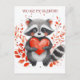 cute racoon with heart for valentine's day postcard
