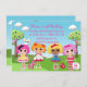 Start your little girls birthday party off right with our cute rag doll birthday invitation featuring a group of 4 rag dolls on a green lawn with cute polka dotted trees with a blue sky and a cute zebra, mouse, bird and little sheep. We offer a cute matching back for an extra special touch. A popular invitation for a sleepover pajama party. Cute for a sweet girls birthday party. Visit our shop to view other stylish & popular birthday party invitations & matching thank you notes, stickers & postage stamps. © Babystar designs