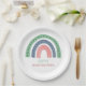 This cute baby shower paper paper plate features a hand-drawn three-layered rainbow of colour pink, blue and green with hearts and lines.