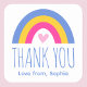 Cute Rainbow Heart Kids Thank You Birthday Blue Square Sticker