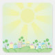 A cute illustration / cartoon drawing of pastel rainbow coloured houses on hills with cute trees and the sun shining.