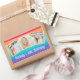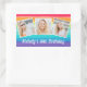 This cute rainbow birthday party sticker features a 3 photo collage of the birthday girl or guy. Three fun square photographs on a modern, colourful design with personalised white script below.