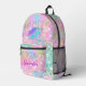 Cute Rainbow unicorn faux Glitter stars monogram Printed Backpack