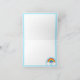 Don't just send a note...send a rainbow! This adorable note card features a sky blue background with a big rainbow graphic. The colourful rainbow has fluffy white clouds and two pink hearts. There is a blue frame on the inside of the blank note card along with a small rainbow graphic and plenty of blank white space for you to write your cheerful message.