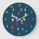 Cute raindrops colorful rain art large clock