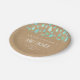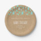 Featuring cute mint green raindrops on a rustic kraft boho background falling towards your personalised details on this gender neutral baby shower, sprinkle or couples shower paper plate. Designed by Thisisnotme©