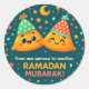 Celebrate the spirit of Ramadan with a playful twist! This vibrant Ramadan Sticker features a fun cartoon illustration of samosas wearing festive hats, surrounded by cheerful elements like crescent moons, stars, lanterns, and twinkling lights. The phrase "From samosa to samosa, Ramadan Mubarak!" adds a touch of fun and warmth, making it perfect for friends, family, and food lovers during this holy month. Ideal for sending Ramadan greetings, this card blends heritage charm with a touch of humor.