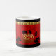 In a square are 5 black rats, tow perched on a golden shape inside of which is the the sixth mouse with ideogram. Behind the scene there is a red background on which decorative and ornate letters form the words: RAT YEAR. Design on two-tone white black mug with black background. Perfect for Chinese New Year of the Rat 2020 or birthday (people born in Rat Year). ----- "The Rat (子) is one of the 12-year cycle of animals which appear in the Chinese zodiac related to the Chinese calendar. The Year of the Rat is associated with the Earthly Branch symbol 子. Year of the Rat is the leap year. People born within these date ranges can be said to have been born in the "Year of the Rat", while also bearing the following elemental sign: