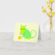 Cute green rat with hunk of cheese on notecard.
