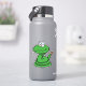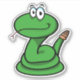 Fun green cartoon rattlesnake. He has oval eyes with raised eyebrows, a rattler on the end of his tail and his tongue sticking out of a cheeky smile.