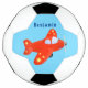 Cute red aeroplane flying cartoon illustration soccer ball