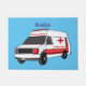 Cute red ambulance van cartoon doormat