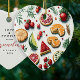 Capture the magic of the holiday season with our enchanting Christmas ceramic ornament, adorned with a watercolor design featuring adorable red and green cookies and fruits, which adds a touch of whimsy to any festive display. What sets it apart is the editable text feature on the back, allowing you to personalise your message with heartfelt love words in simple, clean, black typography and the name written in red modern script. Whether hanging on your tree or gifted to a special someone, this ornament is the perfect choice to spread warmth and cheer.