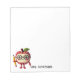 This notepad for teachers features a cute felt-like image of a red apple character wearing glasses and holding a yellow pencil with a teachers name to personalise. Image generated with AI