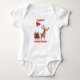 Make your baby's first Christmas unforgettable with this sweet bodysuit! It showcases a delightful reindeer wearing a red and white striped sweater, accompanied by a festive sleigh overflowing with gifts and cheerful heart balloons. The prominent "1st Christmas" text clearly marks this joyous occasion. This charming design is perfect for holiday celebrations, creating lasting memories, and ensuring your little one looks as festive as the season itself. A wonderful way to commemorate their inaugural Christmas experience.
