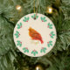 Cute Red Bird & Holly Berries Ceramic Ornament