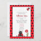 Cute Red Black Ladybug Baby Shower Invitation. Features a flying ladybug with heart tracks and a flower with ladybugs climbing up the stem. Mum to be will be thrilled with this one of a kind baby shower invitation.