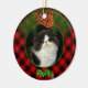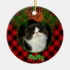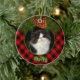 Cute red black plaid pinecone pet photo template ceramic ornament