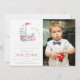 Cute Red Blue Sailboat Kids Photo Birthday Invitation