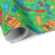 Cute Red Blue Yellow Crayons on Green Pattern Wrapping Paper