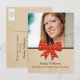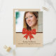 Sweet and charming Cute Bow Graduation Postcard featuring a whimsical polka dot red bow and faux paper texture background. Perfect for announcing your graduate news and inviting friends and family to celebrate the accomplishment. Easy to customise, simply add a photo and your party details in the text fields provided.