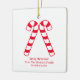 Cute red candy cane custom text simple modern Christmas Ceramic Ornament.