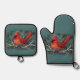 Cute Red Cardinal with Winter Red Berries Oven Mitt & Pot Holder Set