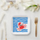 Cute Red Crab & Blue Waves Coastal Paper Plate