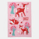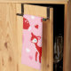 Create an extra sweet gift for your valentine. This kitchen towel has illustrations of cute red and white deer with white heart-shaped spots and pink heart-shaped notes along with pretty trees and hearts against a pink background. This towel is ready to be personalised with a name or your own custom message in red letters.