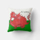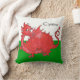 A Pillow or Cushion to personalise, with a cute red dragon on a green and white background, similar to the Welsh national flag; from a hand-painted whimsical illustration by Judy Adamson.